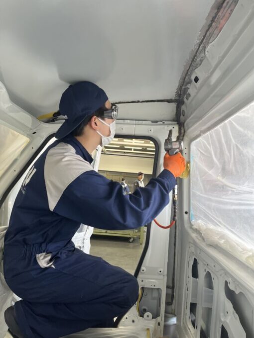 現在ボディークラフト科の生徒たちは日々、オートサロンに向けて作成に取り組んでいます!