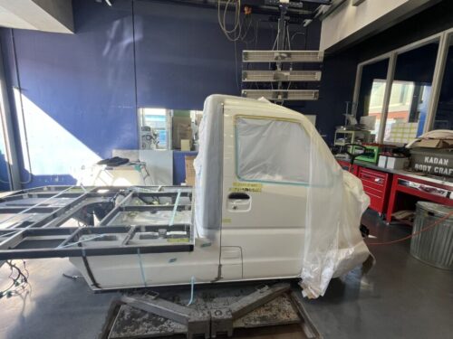 ▼荷台を載せるため車両をカット